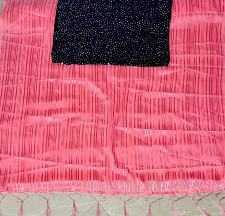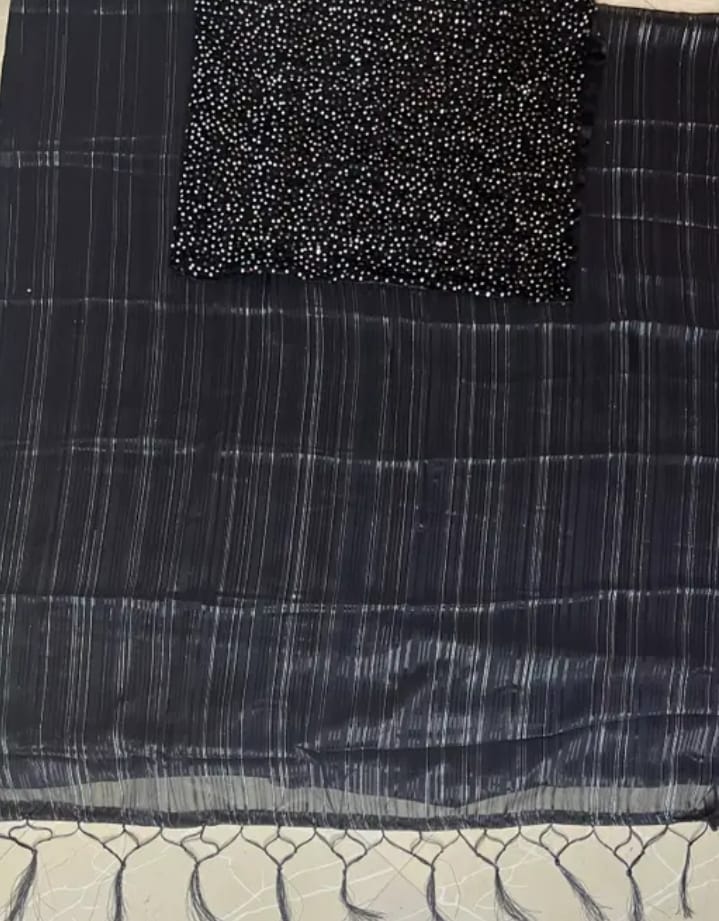 Paired with a separate shiny blouse, this saree brings just the right amount of glamour to your party wear collection. Simple yet striking, it's perfect for evening events, receptions, and festive celebrations where you want to shine effortlessly.